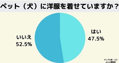 約2人に1人はペット(犬)に洋服を着せていることがわかります。