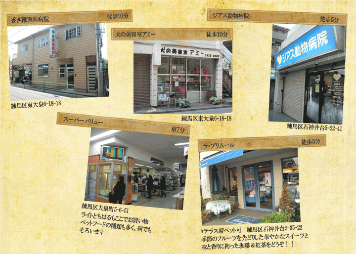 西武池袋線「大泉学園」徒歩15分 L&C エルアンドシー ペット共生型マンション 石神井公園 ゆめりあフェンテHP クリエート 犬の美容室アミー ラ・プリムール スーパーバリュー 練馬大泉店 ジアス動物病院