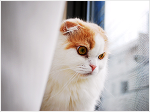 窓枠とカーテンの間に入って外を眺めるのが好きです。