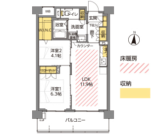 【一般居室 1LDK+WIN.C(38.48m²)~2LDK+WIN.C(61.26m²)】