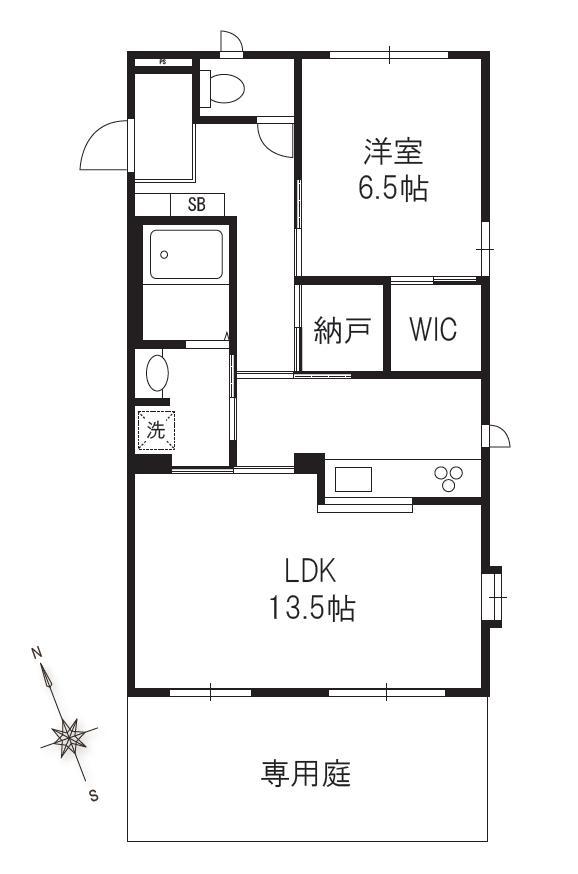 広々LDK13.5帖!専用庭付!収納も多く、広々使えます!