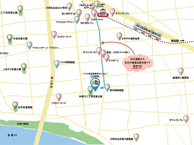 | 沿線・駅 | 東急多摩川線「矢口渡」駅 徒歩7分 京浜東北線・東急池上線「蒲田」駅 自転車10分 |
