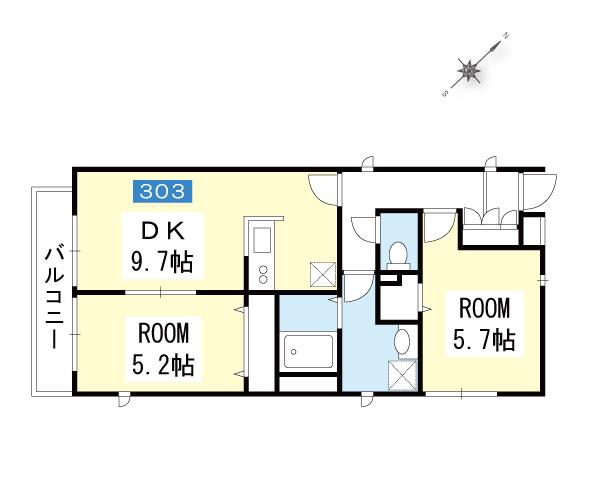 303号室バルコニー※別号室同間取り