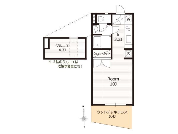 | 設備・サービス | インターネット対応,エアコン,駐輪場,フローリング ,都市ガス,室内間接照明,ウッドデッキテラス,グルニエ |
