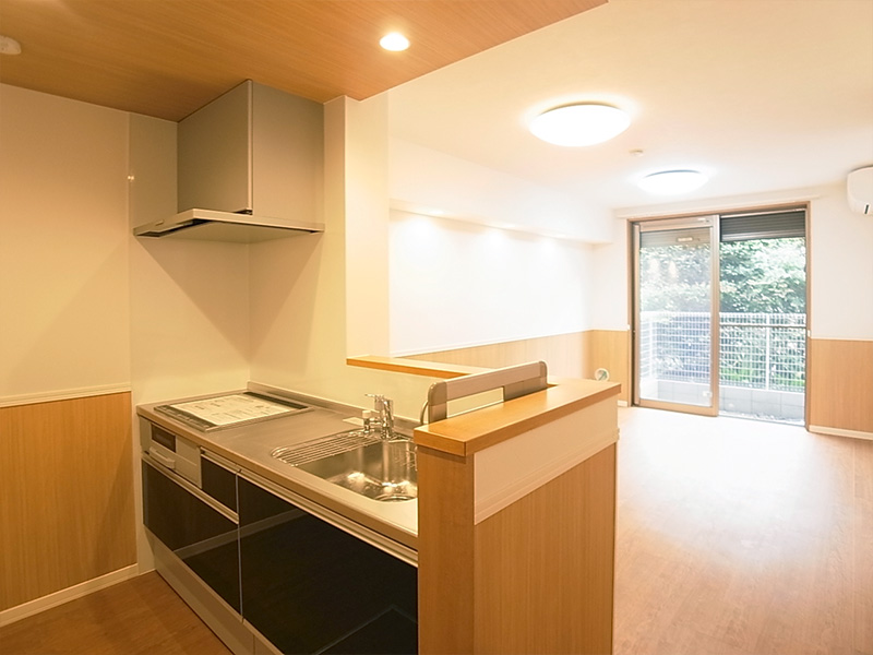 | 設備・サービス | モニター付インターフォン,インターネット対応,エアコン,BS,防犯シャッター,駐輪場,フローリング ,都市ガス,IH3口システムキッチン,床下収納,敷地内ゴミ置き場 |
