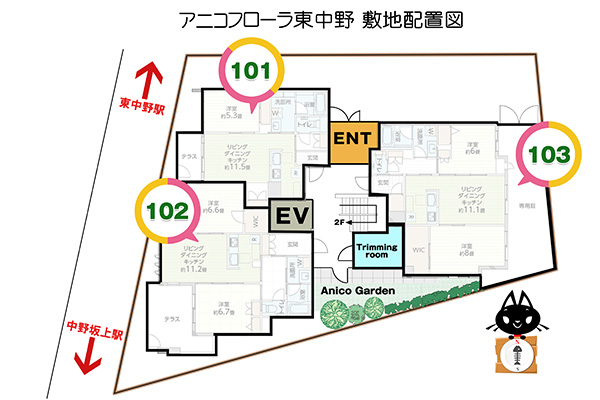 | 設備・サービス | モニター付インターフォン,インターネット対応,エアコン,BS,オートロック,防犯シャッター,駐輪場,エレベーター,フローリング ,都市ガス,床下収納,(共用部)防犯カメラ,宅配ボックス,アニコガーデン,トリミングルーム,anicom24(24時間365日どうぶつの専門家に電話相談可能) |