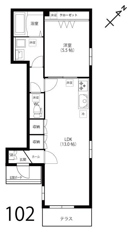 | 設備・サービス | モニター付インターフォン,インターネット対応,エアコン,防犯シャッター,駐輪場,フローリング ,収納,床下収納,クローゼット,シューズボックス,テラス |