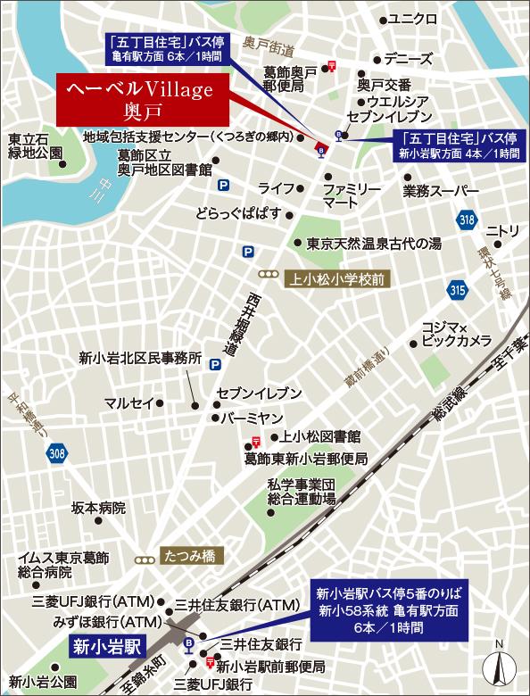 沿線・駅 JR総武線快速、中央・総武線各停「新小岩」駅 バス利用9分「五丁目住宅」バス停下車 徒歩1分