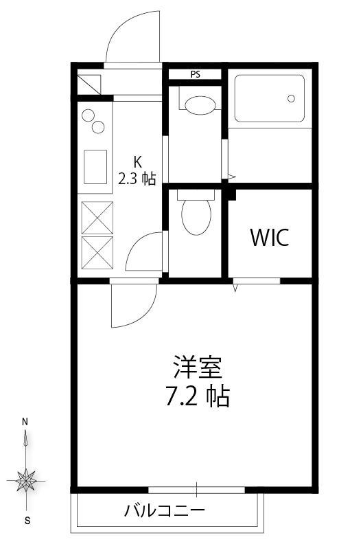ウォークインクローゼット完備の1K