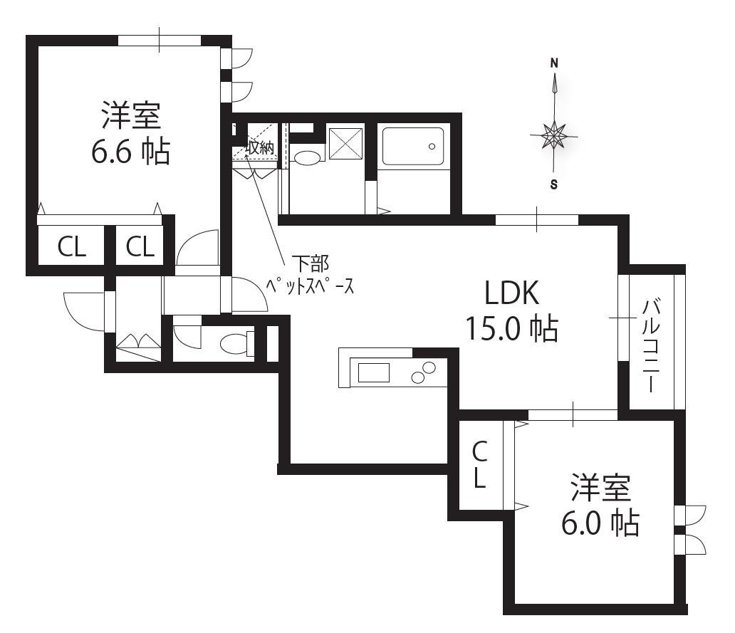 広々2LDKのお部屋です